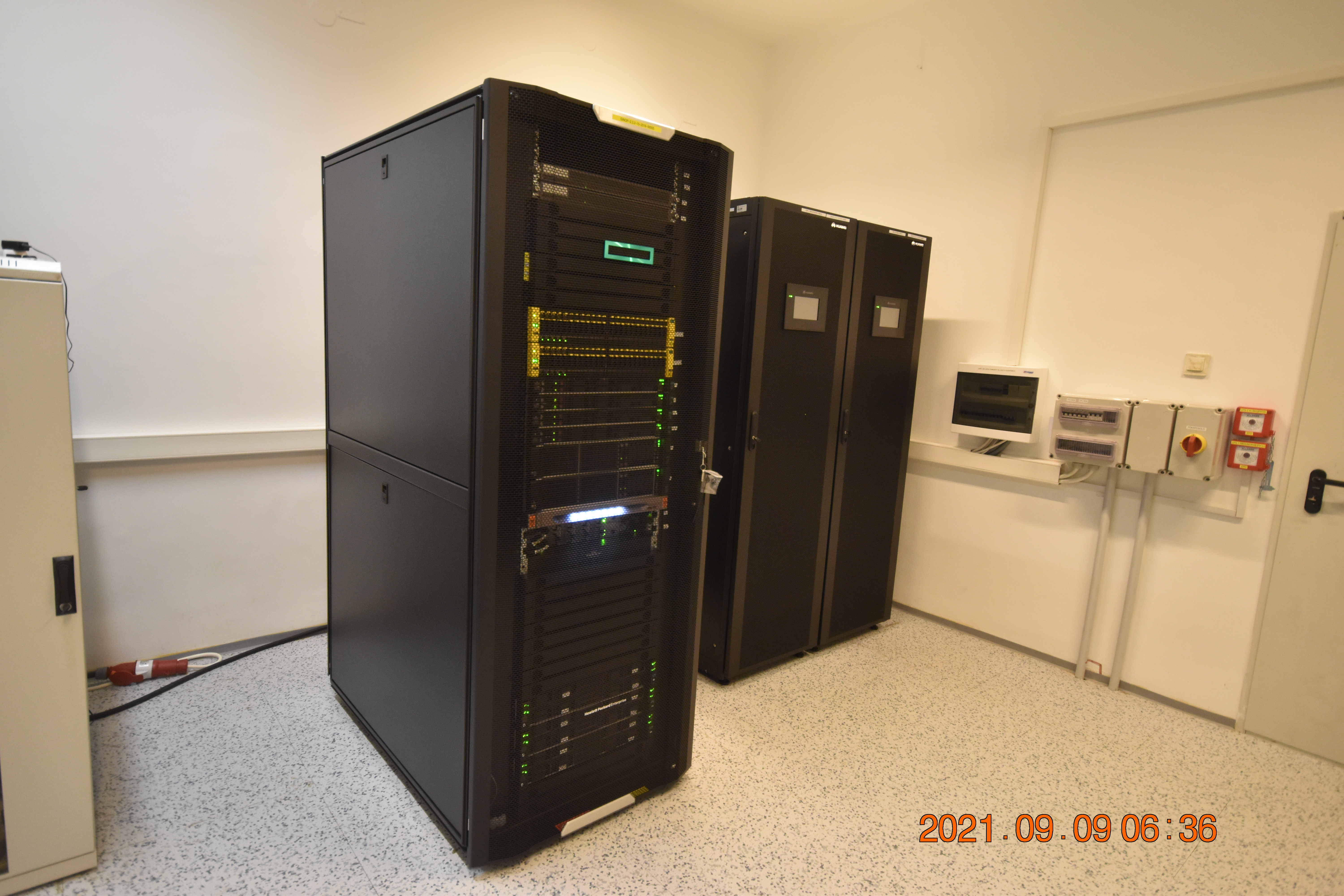 A projekt keretében beszerzett nagy számítási kapacitású szerver és adattároló, valamint a működtetéséhez szükséges szünetmentes tápegység és géptermi klímaberendezés:
