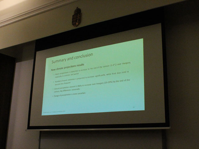 éghajlatváltozás magyarországi hatásainak vizsgálatával foglalkozó projekt. Beszédének zárásaként annak a reményének adott hangot, hogy a kutatások nem szakadnak meg a projektek lezárultával.
