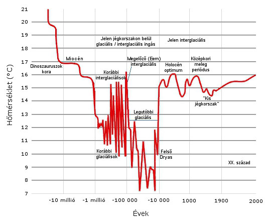 Az interglaciális optimum óta a hőmérséklet ezerévenként kb. fél fokot csökken és mintegy ötezer év múlva ismét egy hűvös, glaciális klíma kezdete várható. E változások azonban két nagyságrenddel lassúbbak, mint a várható antropogén felmelegedés.