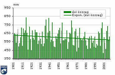 Az elmúlt évben, országos átlagban 579 mm csapadék hullott, ami mintegy 2%-kal haladta meg az 1971-2000-es sokévi átlagot (2. ábra).