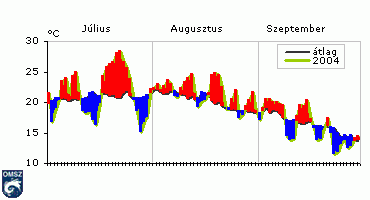 bár a hónap egészére jellemzõek voltak a nagy hõmérsékletbeli ingadozások, többnyire 2-3°C-kal melegebb volt a megszokottnál. Augusztusban 20-27 nap volt nyári nap, ezek közül országos átlagban mintegy 5 bizonyult hõségnapnak. A hónap középhõmérséklete országos átlagban 0,8°C-kal adódott többnek a sokévi átlagnál.