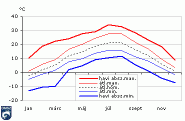 Hazánk éghajlatát globálisan a jelentõs évi hõmérsékletingás jellemzi. A hõmérséklet idõbeli alakulása, az egyes évszakok, hónapok idõjárása nagyon változékony.