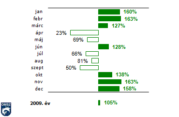 A mezõgazdasági szempontból mértékadó 5mm-nél nagyobb csapadékmennyiség országos átlagban tavaly 40 napon fordult elõ, ami eggyel több az 1971-2000-es normálértéknél. A legtöbb ilyen nap 2009-ben júniusban fordult elõ, összesen 6 alkalommal, ami eggyel több az ilyenkor szokásosnál. Egy nappal maradt el emögött a november és december, szokatlan másodmaximumot alkotva ezzel az év során.