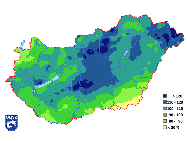 Október országosan csapadékosabb volt a vártnál. A legnagyobb csapadéktöbblet (a sokévi átlag 160-200 %-a) a középső országrészre koncentrálódott, a legkisebb pedig a nyugati határszélre (30-40 %). A Kőszegi-hegység területén és a Tiszántúlon hullott a legkevesebb csapadék, itt a sokévi átlag 20-30 %-át sem érte el a havi csapadékösszeg.