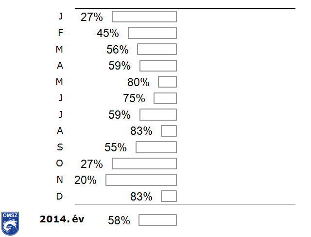 és decemberi átlagok követnek másodikként. Általánosságban elmondható, hogy egyetlen hónapban sem haladta meg a 2014-es átlagérték a normált. A leginkább a januári, februári, októberi és novemberi értékek maradnak el a