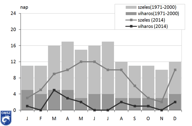 A szeles és a viharos napok számának évi menete
