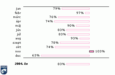 A szélsebesség havi átlagai Budapest-Pestszentlõrincen 2004-ben az 1961-90-es normál százalékában