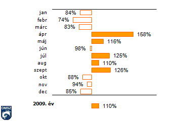 A napsütéses órák havi összegei 2009-ben az 1971-2000-es normál százalékában