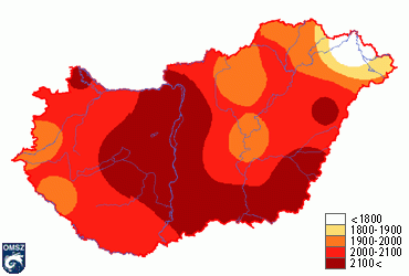 Hazánk területén a napfénytartam éves összege átlagosan 1750 és 2050 óra között alakul. A napsütéses órák éves összege 2006-ban 1690 és 2180 óra között váltakozott az ország területén, az átlagosan 2041 óra 4%-kal haladja meg az 1961-90-es átlagértéket. Általában a Dél-Alföldön és Baranyában éri el a maximumát a napfénytartam, míg minimuma az Alpokalján és az ország északkeleti részén van. A napsütéses órák számának 2006. évi eloszlását mutatja a 25. ábra. A legnaposabb területek az ország középsõ és délkeleti vidékein voltak, míg a legalacsonyabb értékeket az északkeleti határ mentén mérték.