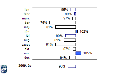 A relatív nedvesség havi átlaga Budapest-Pestszentlõrincen 2009-ben az 1971-2000-es normál százalékában