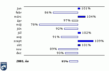 A relatív nedvesség havi átlaga Budapest-Pestszentlõrincen 2001-ben az 1961-90-es normál százalékában