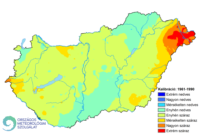 A 2019-es ősz összességében átlagos csapadékú volt, októberre viszont az ország egyes részein súlyosabb aszály alakult ki, amit jól szemléltet a háromhavi SPI októberi eloszlása (12. ábra). Ez alapján elmondható, hogy a 2019. augusztus-októberi időszak Magyarország legnagyobb részén száraz volt. Enyhén csapadékos területek elsősorban az Alföld délnyugati tájain és az Északi-középhegységben voltak ebben a három hónapban. Komárom környéke és az Őrség mérsékelten/nagyon száraz volt. Szabolcs-Szatmár-Bereg megyében nagy területen extrém szárazság uralkodott nyár végén, ősz elején.