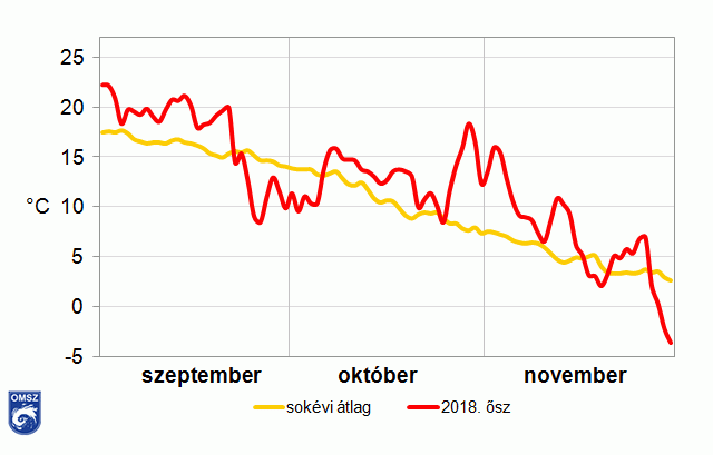 A következőkben összefoglaljuk, hogyan változott a középhőmérséklet hazánkban 2018 őszén.