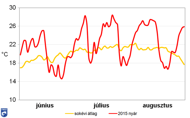 A következőkben összefoglaljuk, hogyan változott a középhőmérséklet hazánkban 2015 nyarán.