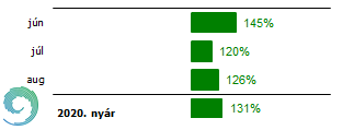A 2020-as nyár csapadékösszege a sokévi (1981-2010-es) átlag százalékos arányában kifejezve