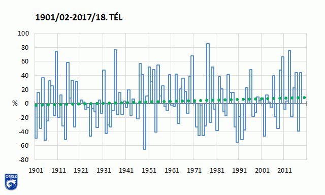 A 2017/18-as tél újra melegebb volt a szokásosnál, különösen 2018. január. A csapadékviszonyokat tekintve az előzőhöz képes lényegesen csapadékosabb volt, az évszakban megszokott csapadékmennyiségnél több mint 40%-kal több hullott le.