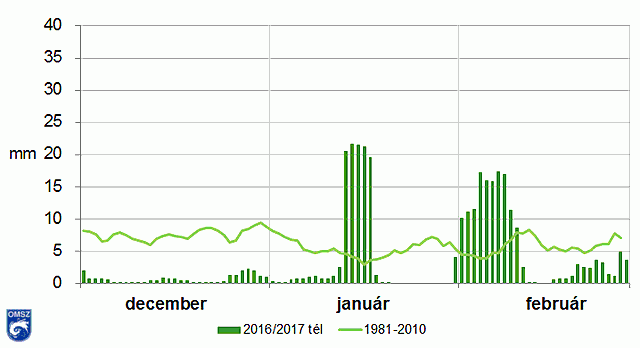 Az 2016/17-es tél az elmúlt évektől eltérően szokatlanul hideg időjárású volt, különösen 2017. január. A csapadékviszonyokat tekintve az előzőhöz képest lényegesen szárazabb volt, az évszakban megszokott csapadékmennyiség közel kétharmada hullott csupán le.
