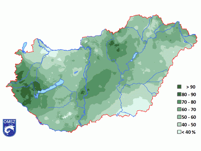 A legnagyobb területeken a sokévi csapadékmennyiség csupán 50-70 %-a hullott le hazánkban a tél folyamán. Az 1981-2010-es átlaghoz közeli csapadékot az ország nyugati területein, a középső országrészben, valamint a Mátra környezetében figyelhetünk meg (80-90 %), az alacsonyabb értékek (7. ábra).