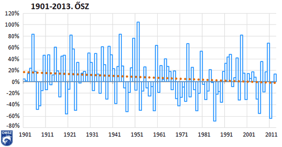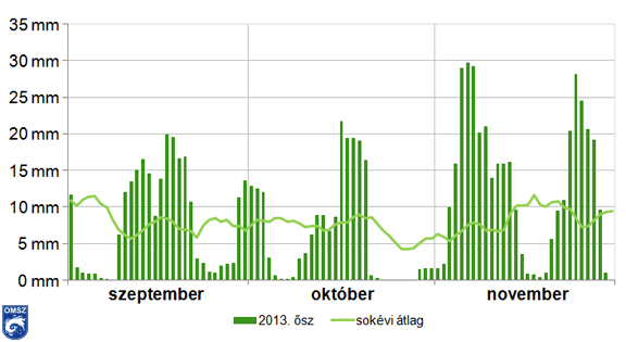 Az idei ősz az országban mindenhol melegebbnek bizonyult a megszokottnál; az egyes hónapok közül az október és a november is az első 15 legmelegebb között foglal helyet az adatsorok 1901-től kezdődő rangsorában. Csapadék szempontjából az évszak kevéssel az átlag felett alakult, októberben szárazabb, szeptemberben és novemberben pedig csapadékosabb időben volt részünk.