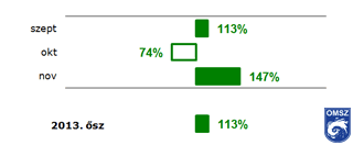 Az országos átlagban vett évszakos csapadékösszeg valamivel meghaladta a sokéves átlagot, annak 113%-a volt (8. ábra). A havi arányokat tekintve láthatjuk, hogy a szeptember és a november felülmúlták a normál értékeket, az október azonban elmaradt attól.