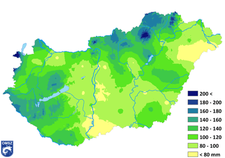Az idei nyáron az ország legnagyobb részén 80-120 mm csapadék hullott. A legtöbb csapadék az Északi-középhegységben és a nyugati határszélen, valamint a Balaton és a Tisza-tó környékén jelentkezett (160-200 mm körül), a legszárazabb területek pedig délen és északkeketen láthatók (< 40 mm).