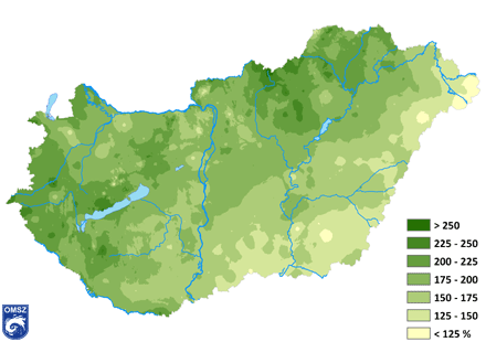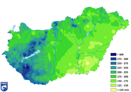 A Dunántúl bizonyult a legcsapadékosabbnak az idei télen: a DNy-i határon és a Balaton környékén nem volt ritka a 275-300 mm-es csapadék sem. Kelet felé haladva csökkenő tendencia látható. A legkevesebb csapadékot a DK-i területek kapták (150 mm alatt).