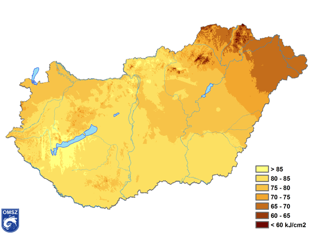 A globálsugárzás értékei zömmel 70 és 85 kJ/cm2 között alakultak 2015 őszén. A Balaton térségében, Nógrád megyében és a főváros környékén születtek a legmagasabb 85 kJ/cm2-t meghaladó értékek. Az ország északnyugati részén nagyobb területen nem érte el a globálsugárzás a 70 kJ/cm2-t, míg az Északi-középhegység magasan fekvő területein ennél alacsonyabb értékek is jelentkeztek.