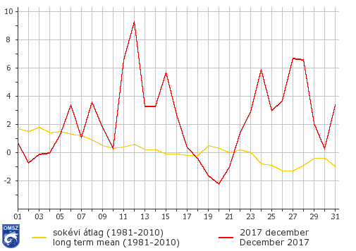Középhőmérsékleti anomália az 1981-2010 átlaghoz viszonyítva