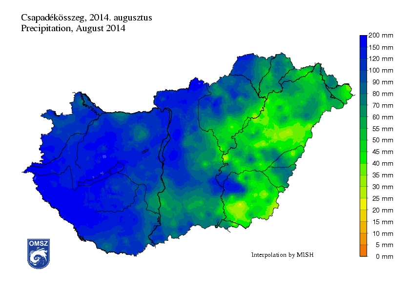A hőmérsékleti ábrákkal összhangban a Tisza vonaláig hullott a legtöbb csapadék az országban, keletre jutott kevesebb. A nyugati országrészben a legnagyobb területeken 120-150 mm közötti csapadékmennyiséget jegyeztünk, keleten jellemzően 30-55 mm közötti ez az érték.