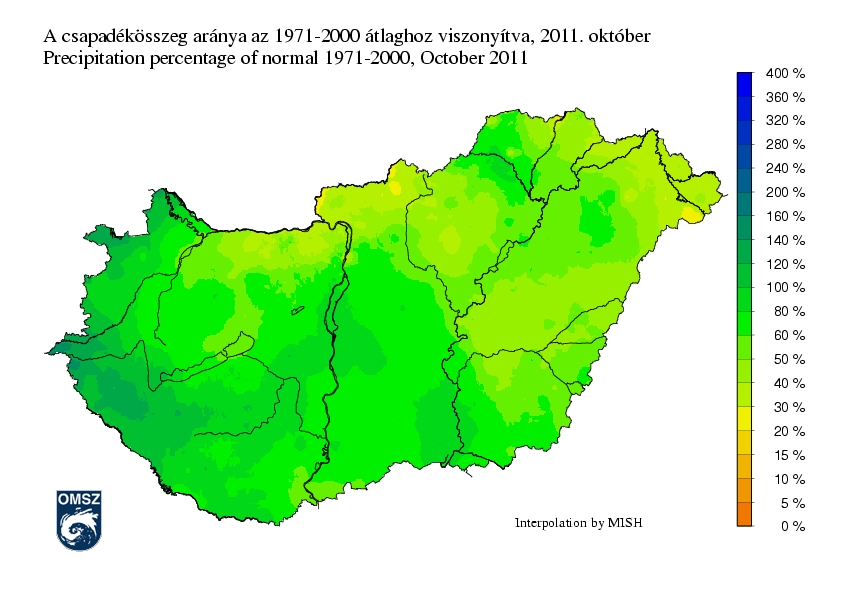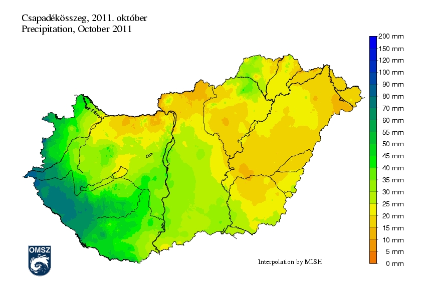 Az ország nagyobb részén - ahogy a hónapok többségében ebben az évben – csapadékhiány jelentkezett. Ez alól kivételt csupán a csapadékosabb délnyugati országrész jelentett, de itt sem esett több eső a szokásos mennyiség másfélszeresénél. A legszárazabb vidékeken (az északi határvidéken, az ország északnyugati csücskében és a Körös-vidéken) az átlagos csapadékmennyiség felénél kevesebb csapadék volt csak jellemző.