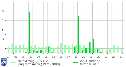 A hónap során előfordultak a szokásosnál jóval hidegebb időszakok, de összességében ez az október közel átlagos hőmérsékletűnek számított. Csapadék tekintetében a szokásosnál szárazabb hónapot zártunk.