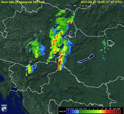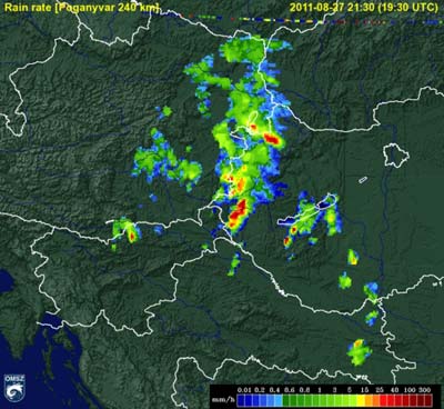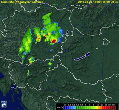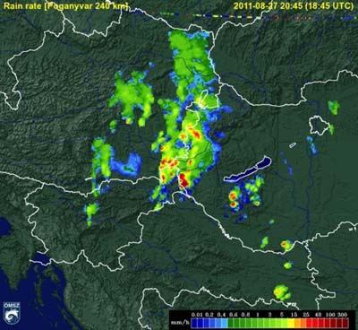 északnyugati részén heves záporok, zivatarok pattantak ki. Sopron környékén, a határon kívül valószínű, hogy szupercella alakult ki, amely végig az
