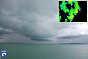 Az idei zivatar szezon egyik látványos mozzanataként gyorsan fejlődő zivatarcellák vonultak át a Balaton fölött. Az egyik zivatarfelhőből a szupercellára jellemző falfelhő jött létre. |