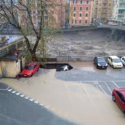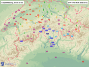 Az Európát kettészelő frontálzóna az Alpok vidékét is elérte. A lassú mozgású frontzóna mentén dél felől nagy sebességgel áramlik észak felé a magas nedvességtartalmú levegő. Az Alpok déli oldalának ütköző légáramlás erőteljes emelkedésre kényszerül, hatására kiadós esőzés alakul ki. |