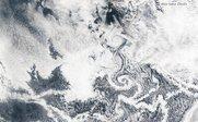 2013. április 23-án délelőtt látványos jelenséget figyelhettünk meg a műholdképeken. Két ciklon a frontjainál összekapcsolódott, melynek eredményeképpen egy „Z” alakú spirálformát vettek fel. |