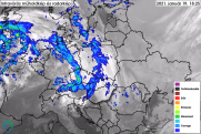 Az infravörös műhold+radar animáción a január 19-én érkező melegfronti csapadék látható. Az előrejelzésnek megfelelően elsősorban az északi megyékben vegyes halmazállapotú csapadék és ónos eső is előfordult, viszont az északkeleti harmadban hó hullott.