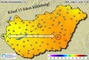 Hazánkban közel 15 fokos hőmérséklet-különbség alakult ki május 5-én, kedden délutánra. Miközben a csapadék hűtötte tájakon 10 fok köré csökkent a hőmérséklet, addig keleten 20 fok feletti csúcsértékek is előfordultak. Héfőn markáns hidegfront érkezik, amely megint jelentős hőmérséklet-különbségeket eredményezhet hazánk északnyugati és délkeleti területei között. |