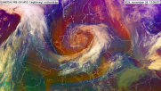 Az EUMETSAT MTG "Légtömeg" műholdképén gyönyörűen kirajzolódik a ciklon, amelynek hidegfrontja eléri hazánkat. |