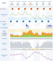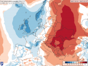 A hétvégén (december 9-10.) a talajközeli szinteken még sarkvidéki eredetű levegő lesz felettünk átlagos körüli vagy az alatti hőmérséklettel. A jövő hét első napjaiban egy tőlünk nyugatra húzódó frontrendszer előoldalán erős déli, délnyugati áramlással az ilyenkor szokásosnál jóval enyhébb léghullámok hódítják meg Közép- és Délkelet-Európa nagy részét. Hétfőn és kedden (december 11-12.) a napi maximum rekordok 17, míg a legmagasabb minimumok rekordjai 11, 12 fok körül alakulnak, így ezek meközelítésére és megdöntésére is van esély a jelenlegi számítások alapján. |