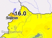 December 10-én az átlagos országos maximum 3 fok, az eddigi legmagasabb maximum pedig 17,5 fok, amelyet 1915-ben Ásotthalmon mértek. Bár ma rekord nem dőlt meg, de az ország legnagyobb részén 7 és 13 fok közé melegedett fel a levegő, Sopron Fertőrákos 16,0 fokot jelentett. Az egész nap borult, párás északkeleti területeken viszont 0 fok közelében marad a hőmérséklet. |