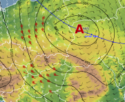 Érkező magassági teknő; beáramló hideg levegő; labilis alsó 3-4 km. Ezek a körülmények jelentették a táptalaját a helyenkénti hózáporok kialakulásának. |