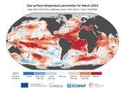 A mögöttünk álló február és tél után a tavasz első hónapja is legmelegebb volt globálisan a modernkori mérések kezdete óta, 14,14 °C fokos havi átlaggal, mely kismértékben, 0,1 °C fokkal haladta meg a korábbi csúcstartó 2016-os márciusi átlagot és 1,68 °C fokkal volt az iparosodás előtti (1850–1900) átlagot. Továbbá a Kopernikusz Éghajlatváltozási Szolgálat (C3S) március havi klímaközleménye szerint az elmúlt 10 hónap mindegyike az első helyen áll az adott hónap legmelegebbjeinek listáján (2023. június – 2024. március). |