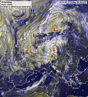Sekély ciklon alakítja a hétvége időjárását a Kárpát-medence téségében, amely kedvező feltételeket teremt a felhő- és csapadék-képződéshez. |
