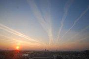 Kondenzcsíkokkal tarkított idei utolsó nyári napkelte