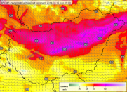 A számítógépes előrejelzések már bő egy hete azt mutatták, hogy a gyönyörű tavaszi időszakot követően a nemzeti ünnepünkön érkezik térségünkbe egy markáns hidegfront. Néhány napja az is egyre valószínűbbnek tűnt, hogy a front a nap második felében ér el bennünket észak, északnyugat felől, és a délután folyamán robog keresztül az országon. Az ünnepi eseményeket leginkább az általa okozott szél befolyásolhatja. Nézzük, hogy az egyik nagyfelbontású modellünk, az AROME miként jelzi előre a front átvonulásához kapcsolódó szélviszonyokat! |