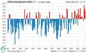 A 2023. július középhőmérséklete országos átlagban 22,7 Celsius fok volt, ami 1,2 fokkal haladja meg az 1991–2020-as átlagot és a kilencedik legmagasabb júliusi érték 1901 óta.