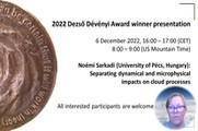 Dévényi Dezső kollégánk emlékére az utódok online előadóülést szerveztek 2022. december 6-án. A rendezvényen a Dévényi Dezső Numerikus Prognosztikai Emlékérem 2022. évi díjazottja, Sarkadi Noémi tartott szakmai előadást. |
