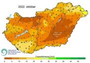 A csapadékos szeptembert egy nagyon száraz október követte. Az eddig beérkezett csapadékadatok alapján az országos átlag csupán 9,5 mm volt, ami kevesebb, mint 20%-a az 1991–2020-as átlagnak, így ezzel a 8. legszárazabb október volt 1901 óta. De nemcsak száraz, 1,7 Celsius fokkal melegebbet is volt az ősz második hónapja, s ezzel az értékkel a 9. legmelegebb október adódott a megfigyelések sorában. |