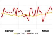 Az 2020/2021-as tél a hetedik legenyhébb tél volt 1901 óta. Az évszak során lehullott csapadékmennyiség kevéssel meghaladta az 1991–2020-as értéket, de térbeli és időbeli eloszlása nem volt egyenletes. További (tér)képes részletek az Éghajlati visszatekintőben találhatók. |