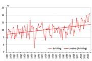 A Földön a 2019-es év hőmérsékleti szempontból a második legmelegebb évnek adódott öt globális éghajlati adatbázis adatai alapján. Magyarországon az évi középhőmérséklet újra 12 Celsius fok felett alakult, és meghaladta az eddigi legmelegebb, 2018-as év értékét. Az országos középhőmérséklet 2019-ben mintegy 1,87 fokkal múlta felül az 1981-2010-es sokévi átlagot, és 12,19 Celsius fokos középhőmérsékleti értékkel rekordmeleg volt az ellenőrzött, homogenizált és interpolált, 1901-től kezdődő éghajlati idősorban. A 2019-es évben összességében átlagos mennyiségű csapadék érkezett az éven belül nem túl egyenletes eloszlásban. Az év során májusban és novemberben érkezett kiugró mennyiségű csapadék, míg extrémen száraz volt a március. Az évi átlagos csapadékösszeg 2019-ben 631 mm-nek adódott, mely az 1981–2010-es sokévi átlag 105%-a. Részletes elemzés olvasható az Éghajlati visszatekintőben. |